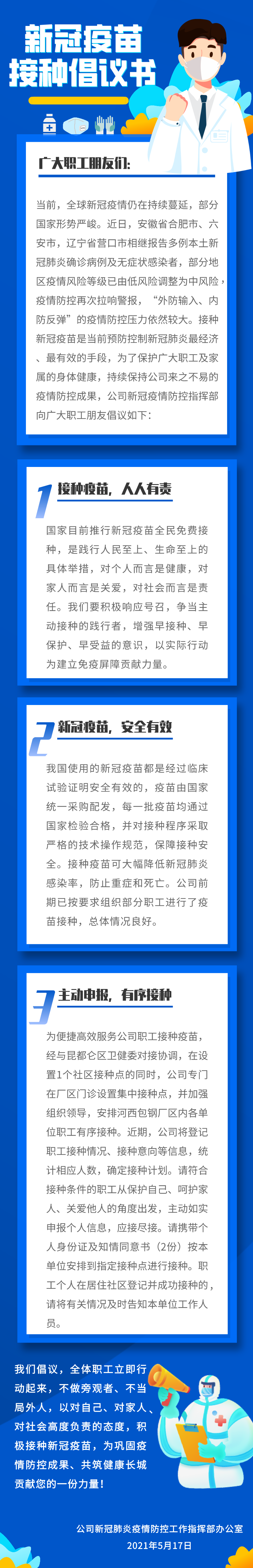 包头市华体会手机站·官方版在线稀土抛光粉有限公司新冠疫苗接种倡议书